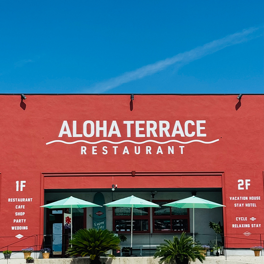 2Fに当宿泊施設があり、1Fはレストラン「ALOHA TERRACE(アロハテラス)」となっています。